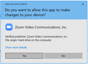 Zoom peut demander votre autorisation pour installer le logiciel. Dans ce cas, merci de confirmer.